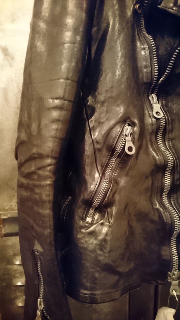 2017年11月02日 sold now お電話でダブルライダースの黒のLサイズございますか?あっ とっと 、、すみません「ミッドナイト」しかないです。そうですかサイズ確認だけでも どうぞお越しくださいませ。ミッドナイトと黒を見比べいただき「一見だけでは見分けがつかないですね」はい。ミッドナイトは夜間照明下では黒に見えます。シングルもいいですね。バックラッシュはシングルでも存在感アリアリです。では、、、、。「シングルのミッドナイト」にします。甲乙つけがたきミッドナイトとブラックでした。