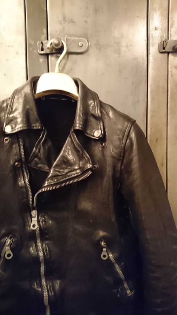 2017年11月11日 sold now 「これ買う」にあたって最重要ポイントは?色、 ゆかり、 今年は、 サイズ あたりでしょうか。。「色」は着てみたい色。いくつか持つと好きな色って似通ってくるので着たい新鮮さをメインに考えるようにします。選んだのは既に持ってる「グレイ」ではなく好きな「紺」でもなく「茶」にしました。以下引用イメージ「ゆかり」は自分に関係あるもの好きなもの。昔、見た(最近見た)映画や雑誌の中にあったイメージとか。(ライダースでもWかSか?)好きなミュージシャンのお気に入りの服であるとか。「今年は」素材であるとか柄であるとか、、今日は「レザーを今年着る」でした。今年は去年と少し違った自分。あと持ってる赤のインナーと合わそう。 なかなか着なかったけど今年は着よう。というように持ってるアイテムを復活させるために買うことも。以下引用イメージあと「サイズ感」がばっちりだからもあります。なにより、自分がよし!と感じたところで止まってるサイズ感てなかなか無いもの。シングルライダースを「今年は着たい」とMサイズブラックをご試着に滋賀県からお越しいただきました。 んが!!まさかあるとも思わなかったSサイズのミッドナイトが目前にあり、、。そして。まさにこれこその「ザベスト」。手の打ち所のせめぎあいが楽しい今年のお買い物無言の「呼び声」が届いたのかも。今日も読んでいただきありがとうございます。