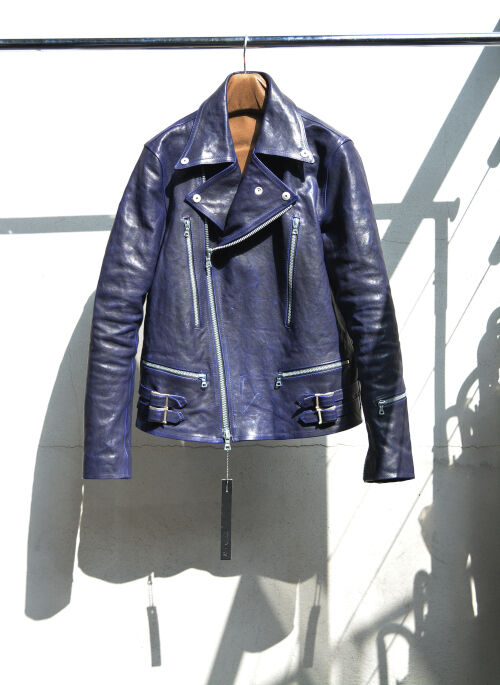 1254-02 BLACK イタリアンショルダー製品染めダブルライダース